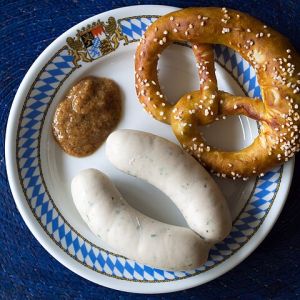 La saucisse blanche est une saucisse de veau et de porc, assaisonnée de persil, de citron et d'épices. Elle est généralement pochée et servie avec de la moutarde douce et des bretzels.