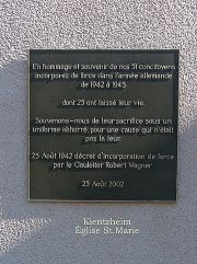 | 31 juillet 2024 à 09:47 | Malgre-nous.jpg (fichier) | 82 kio | Adminalsace | Image de la plaque commémorative sur l'église de Kientzheim pour les Malgré-nous Crédit : Par KA PI — Travail personnel, Domaine public, https://commons.wikimedia.org/w/index.php?curid=8038189 | 1 | |