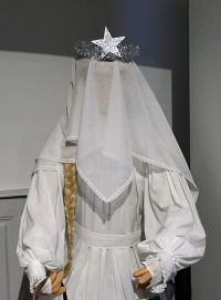 Avec le temps, le Christkindel est devenu une figure féminine angélique, souvent représentée avec des cheveux blonds, vêtue d'une robe blanche et portant une couronne dorée. Cette transformation s'explique par la fusion des traditions chrétiennes et païennes et l'influence des représentations artistiques au fil des siècles.